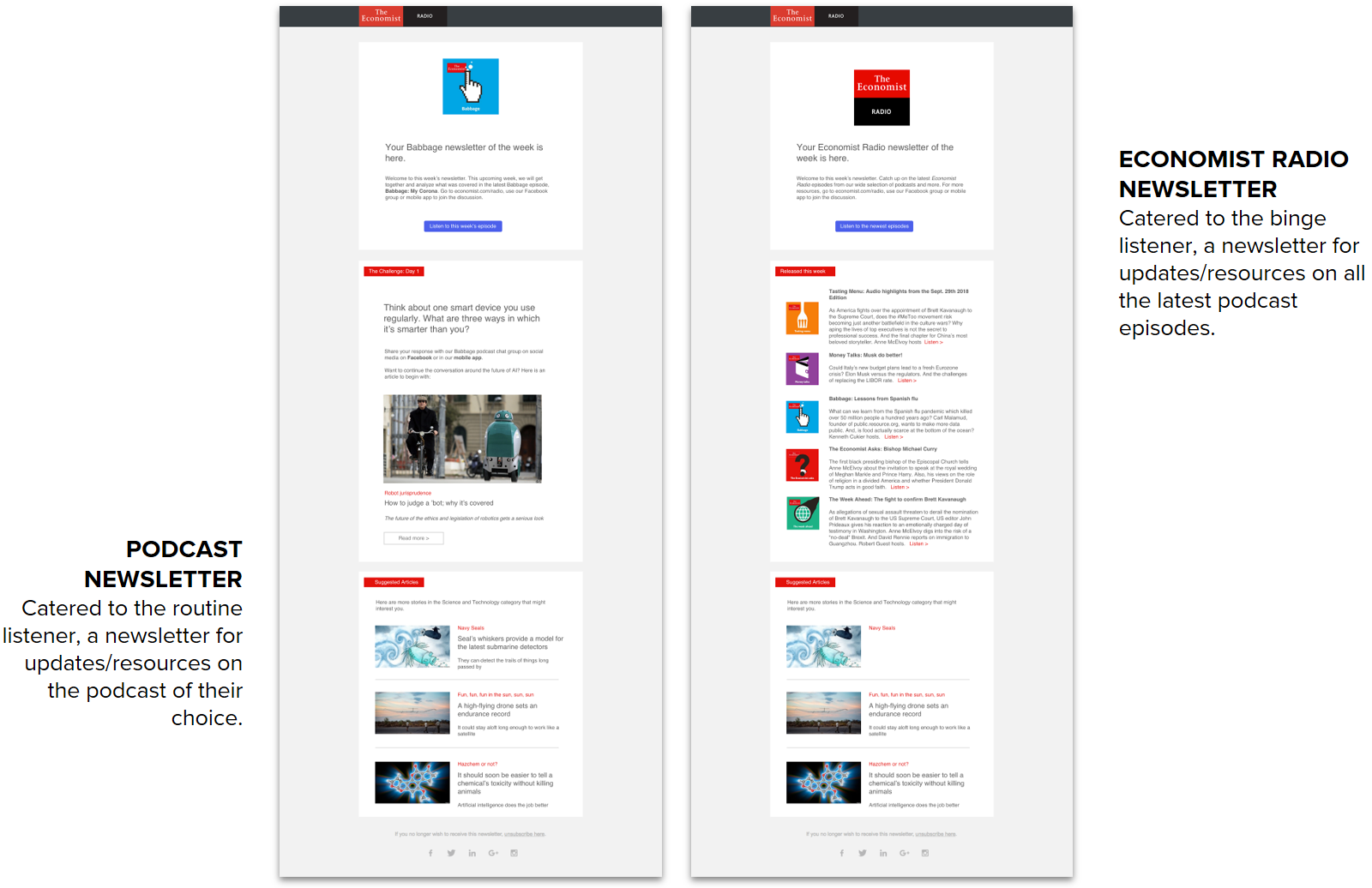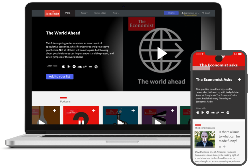 • Direct Economist Radio listeners to other Economist content (articles, audio edition, etc.).
