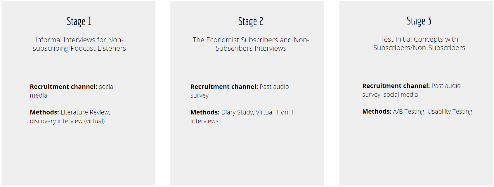 • Facilitate current listener habits within the Economist audio experience as a whole.